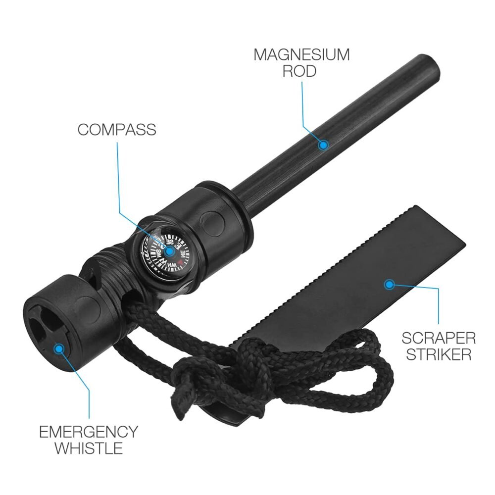 • Shave Magnesium: Use the included steel scraper to shave highly flammable magnesium particles from the ferro rod. This key step in the Flint And Steel Survival Kit ensures you have a concentrated pile of shavings ready to ignite.