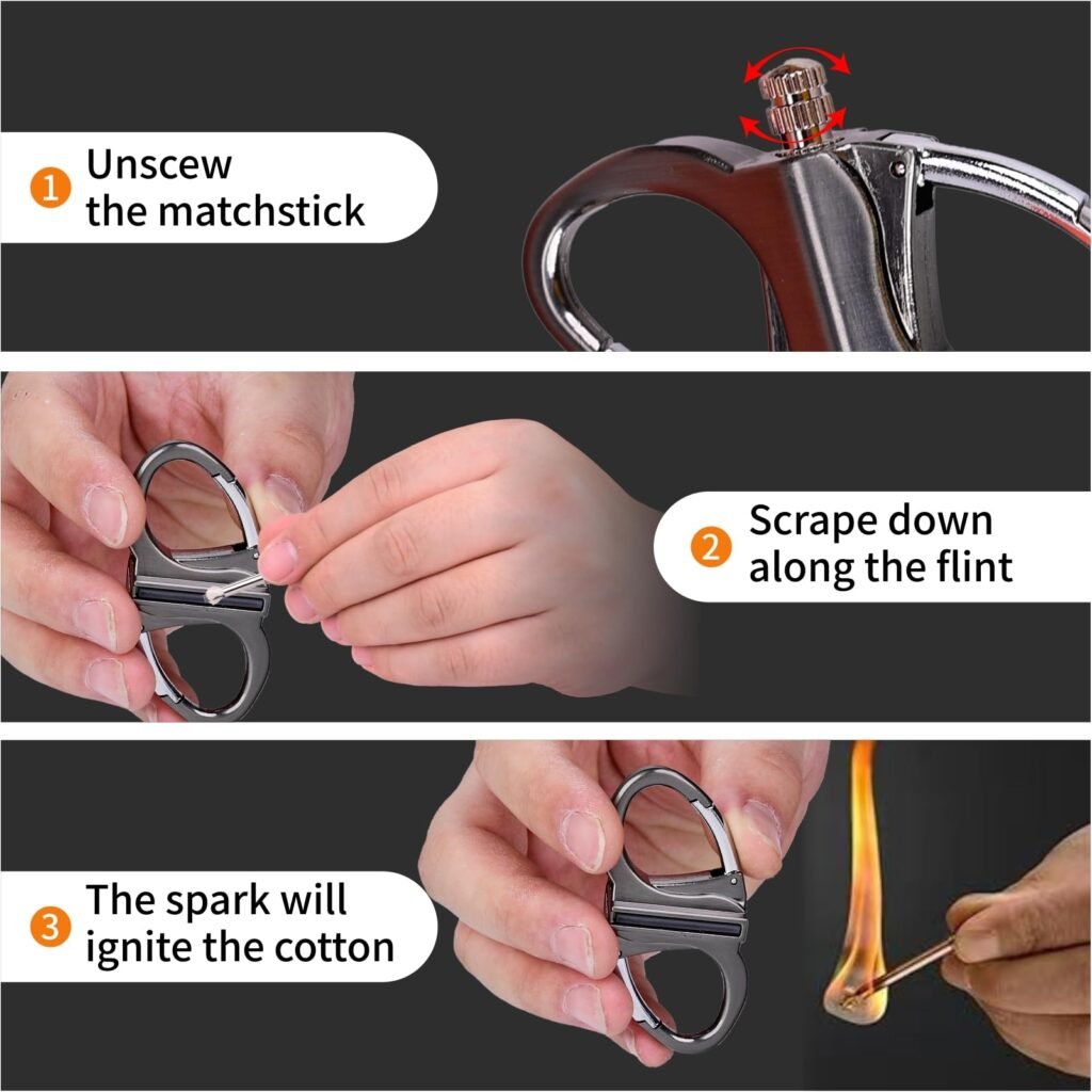 • Fire Starting: The flint rod produces sparks when struck against the metal body, igniting the cotton wick and creating a flame. This flame can be used to start campfires, stoves, and other sources of heat and light.